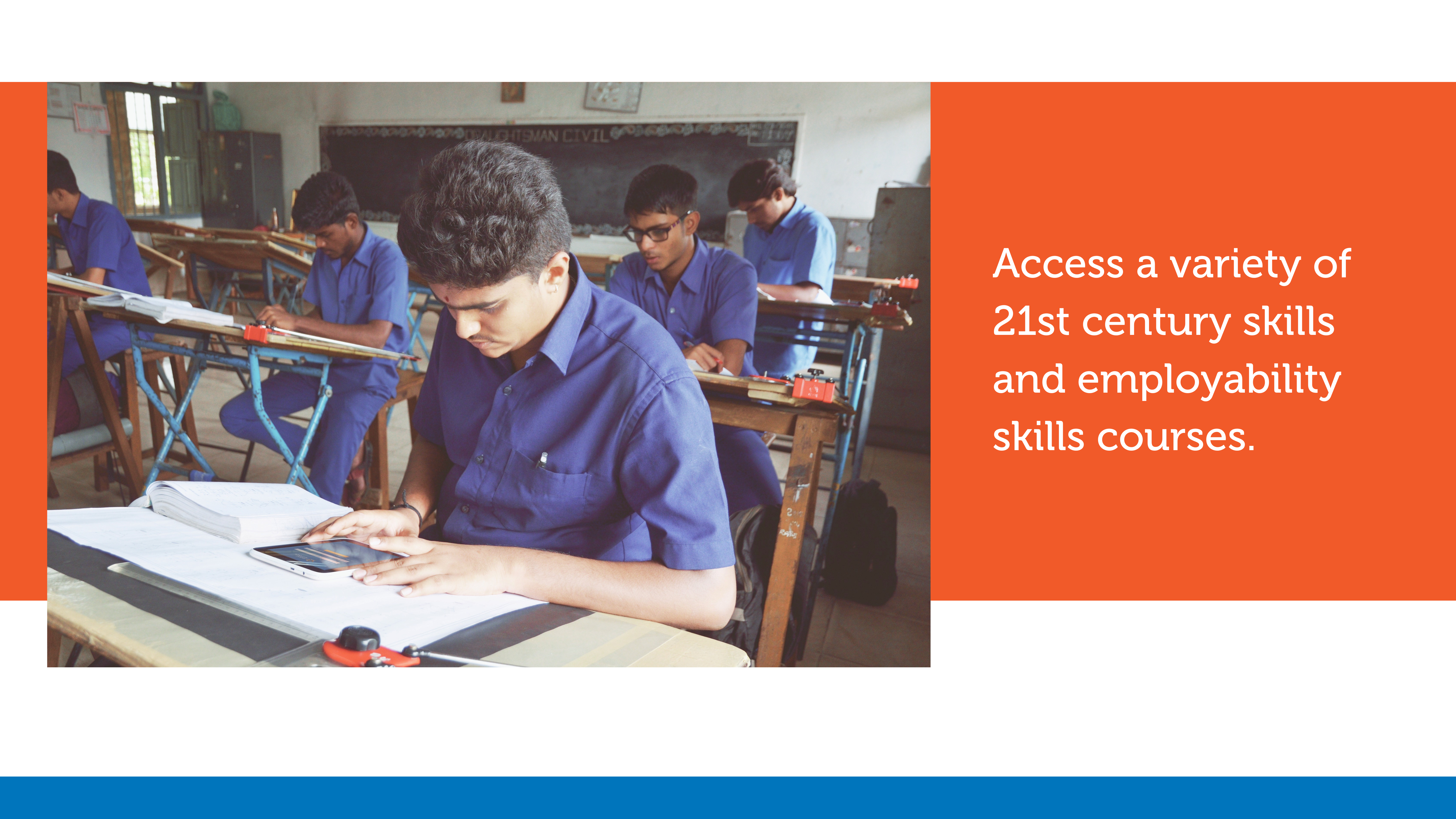 Over 250 resources of interactive, gamified content to build skills around communicative English, life skills, gender sensitivity, work readiness, digital literacy, technology in careers and self-employment.